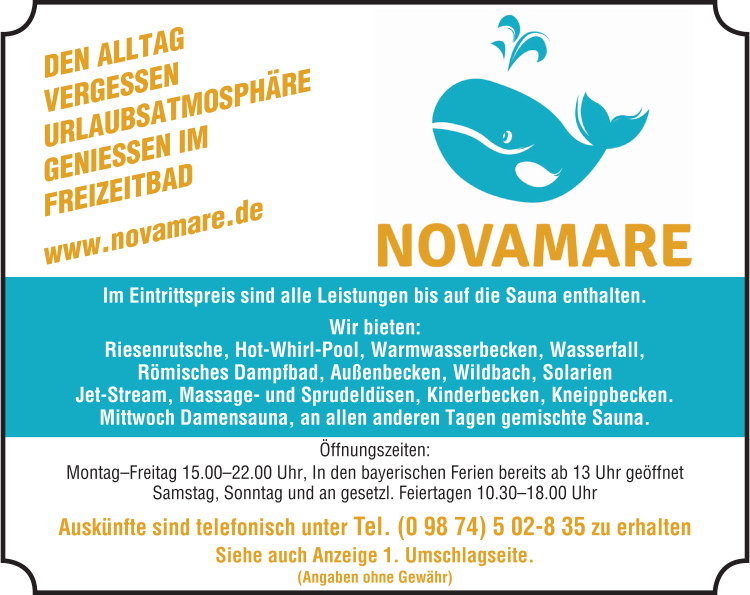 In den bayrischen Ferien werktags bereits ab 13.00, an Feiertagen 10.30-18.00