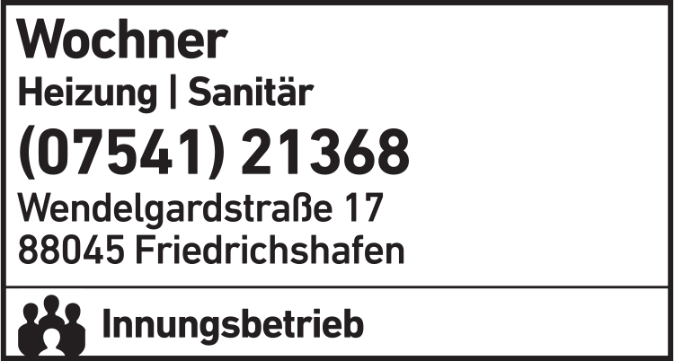 Georg u. Friedrich Wochner Heizung, Sanitär 07541 2 13 68 Friedrichshafen Wendelgardstr. 17 88045