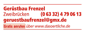Die Adresse von Gerüstbau Frenzel lautet: Mailänder Ring 31, 66482 Zweibrücken