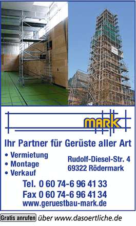 Die Adresse von Gerüstbau Mark GmbH & Co. KG lautet: Rudolf-Diesel-Str. 4, 63322 Rödermark