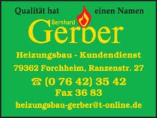 Die Adresse von Gerber Bernhard lautet: Ranzenstr. 27, 79362 Forchheim