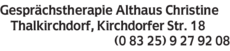 Gesprächstherapie Althaus Christine 08325 9 27 92 08 Oberstaufen Kirchdorfer Str. 18 87534 Thalkirchdorf 5 5 1