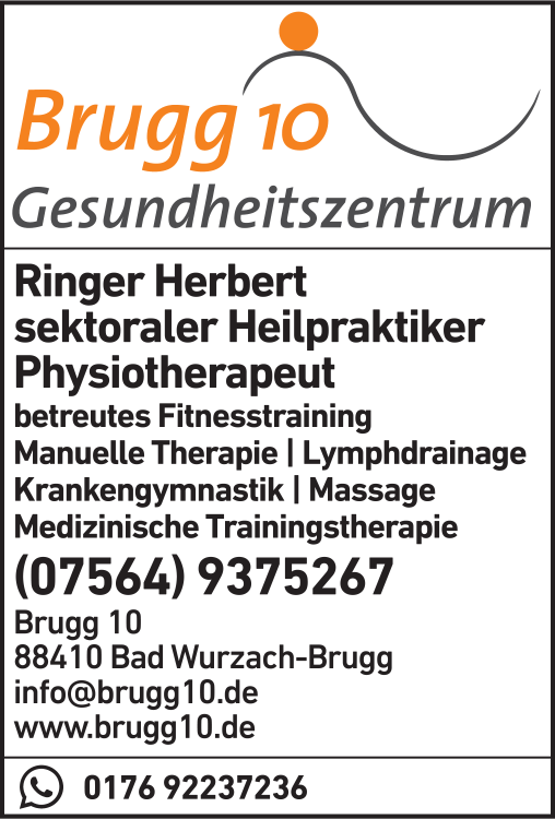 Die Adresse von Gesundheitszentrum Brugg 10 GmbH lautet: Brugg 10, 88410 Bad Wurzach
