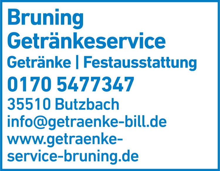 Die Adresse von Getränkeservice Bill Inh. Dirk Bruning lautet: Hauser Chaussee 4, 35510 Butzbach