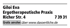 Giloi Eva Ergotherapeutische Praxis bietet Therapie, Ergotherapeutin, Ergotherapeut, sensorische Integrationstherapie, AD(H)S, Ergotherapie, Handtherapie, Ergotherapeuten und Ergotherapeutische Praxis an.