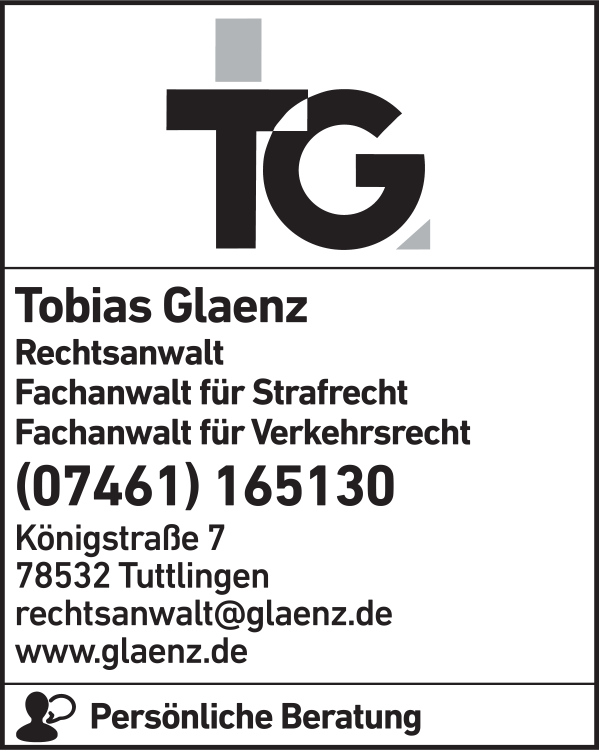 Die Adresse von Glaenz Tobias Rechtsanwalt lautet: Königstr. 7, 78532 Tuttlingen