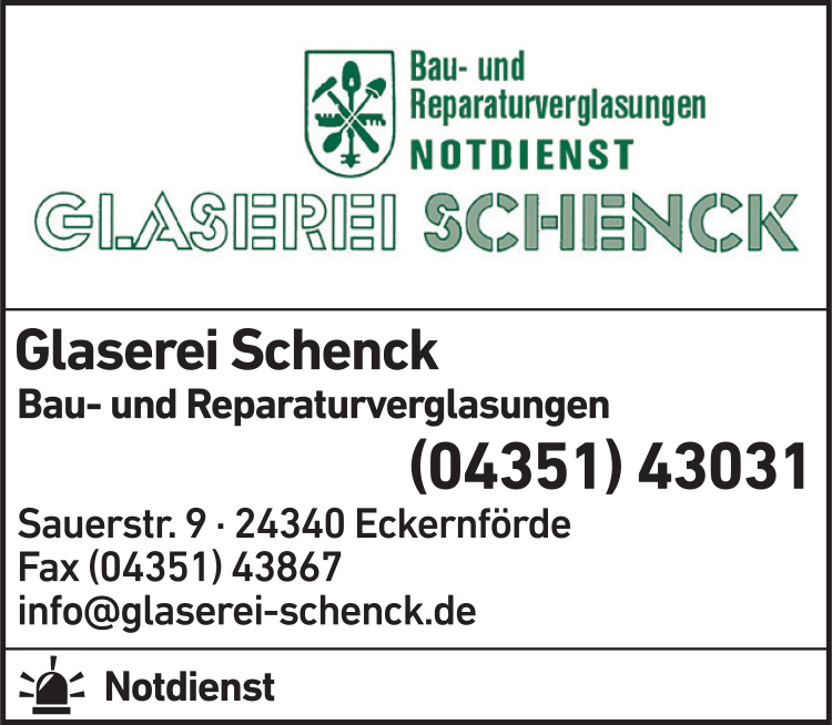 Glaserei Schenck 04351 4 30 31 Eckernförde Sauerstr. 9 24340 5 5 1