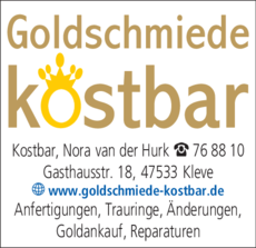 Die Adresse von Goldschmiede Kostbar Nora van der Hurk lautet: Gasthausstr. 18, 47533 Kleve