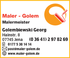 Golembiewski Georg bietet Malerarbeiten, Tapezierarbeiten, Tapezieren, Wohnungsrenovierung, Farbgestaltung, Fenster- und Türenanstrich, Fensteranstrich, Türenanstrich, Renovierungsarbeiten und Malerbetriebe an.