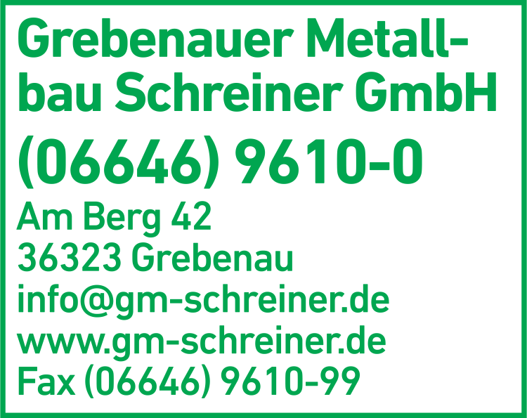 Die Adresse von Grebenauer Metallbau Schreiner GmbH lautet: Am Berg 42, 36323 Grebenau