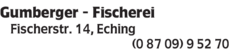 Die Adresse von Gumberger Fischerei lautet: Fischerstr. 14, 84174 Eching