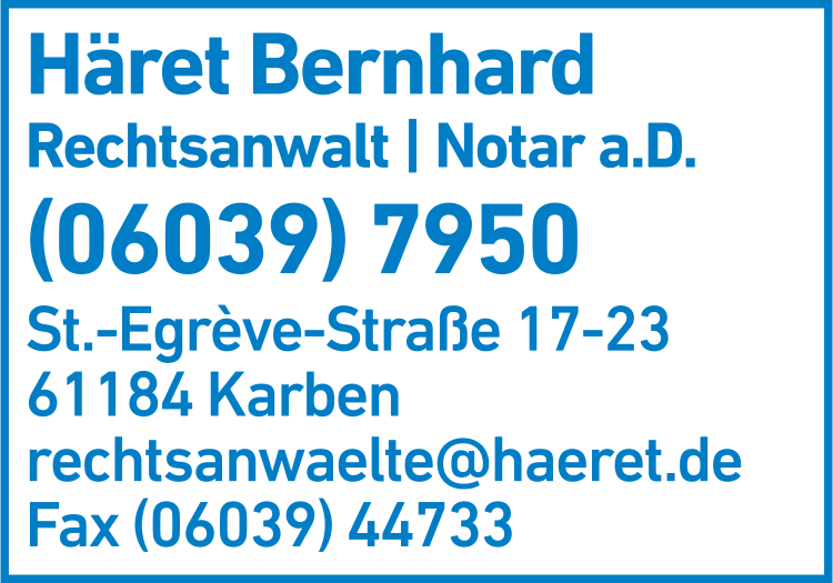 Wie lautet die Adresse von Häret Bernhard Rechtsanwalt und Notar a.D.?