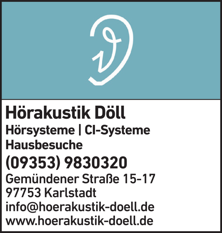 Hörakustik Döll 09353 9 83 03 20 Karlstadt Gemündener Str. 15-17 97753