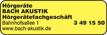 Hörgeräte Bach Akustik 06032 3 49 15 50 Bad Nauheim Bahnhofsallee 1 61231 5 5 2