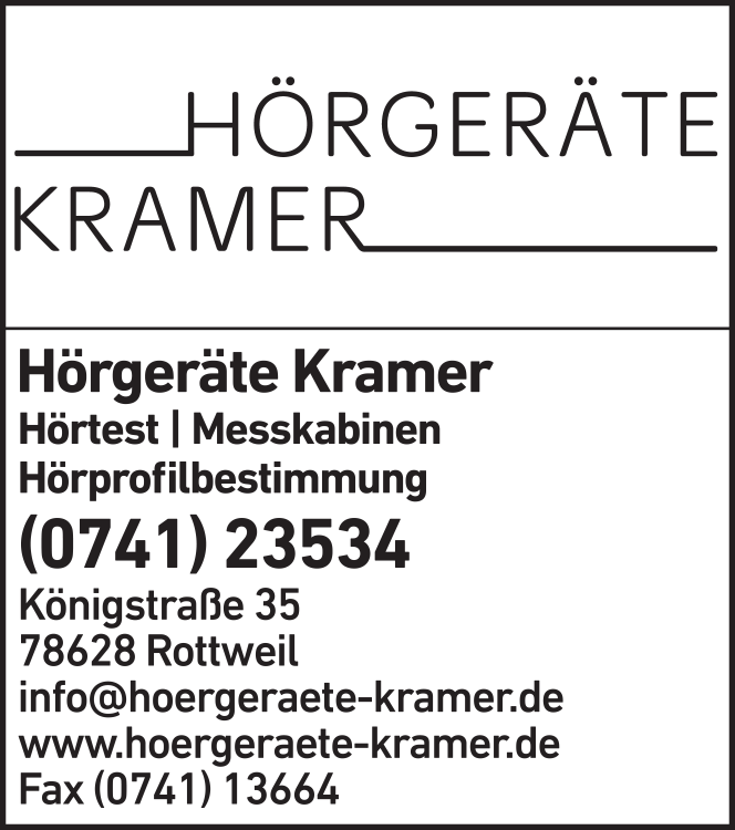Die Adresse von Hörgeräte Kramer lautet: Königstr. 35, 78628 Rottweil