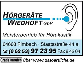 Die Adresse von Hörgeräte Wiedhöft lautet: Staatsstr. 44 a, 64668 Rimbach