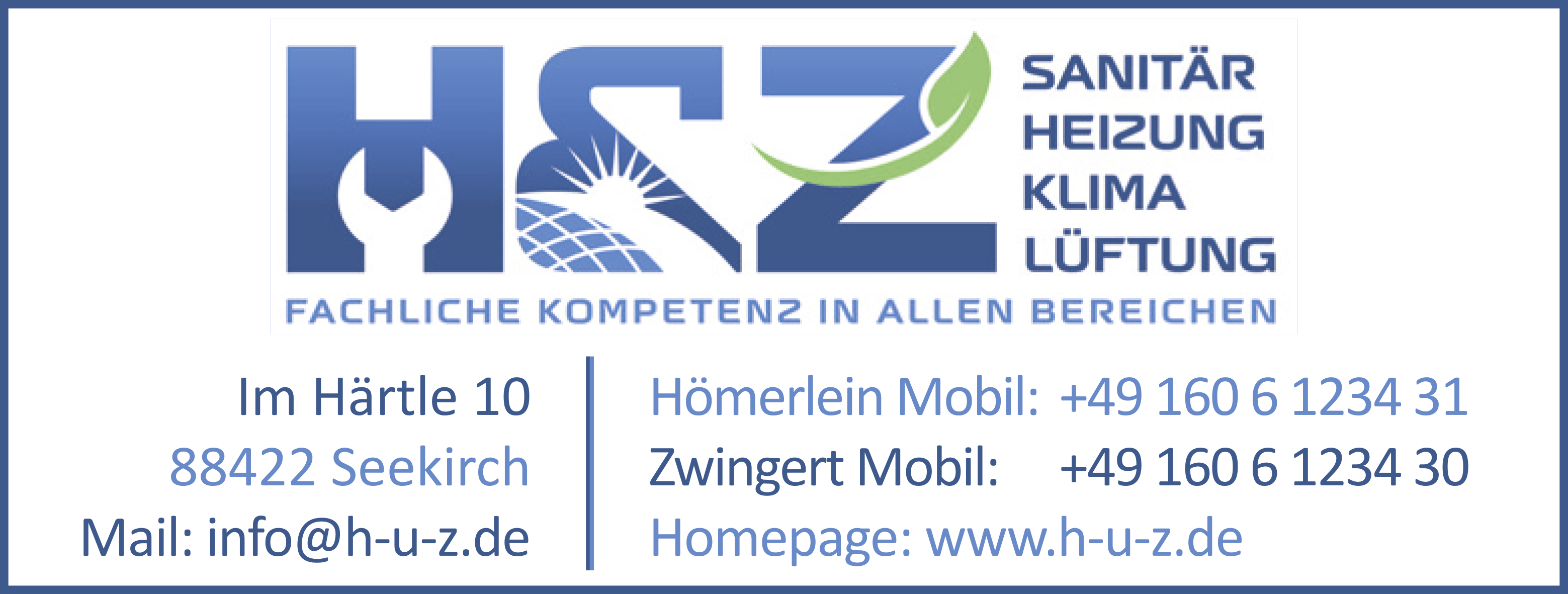 Die Adresse von H & Z SHKL GbR Marc Hömerlein und Florian Zweigart lautet: Im Härtle 10, 88422 Seekirch
