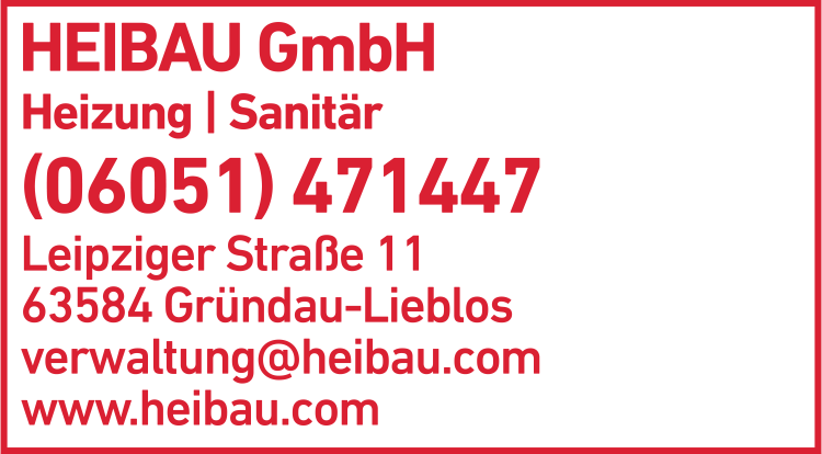 Die Adresse von HEI-BAU GmbH Inh. Martin Kern Meisterbetrieb Heizung und Sanitär lautet: Leipziger Str. 11, 63584 Gründau