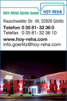 Die Adresse von HOY-REHA Görlitz GmbH lautet: Rauschwalder Str. 49, 02826 Görlitz