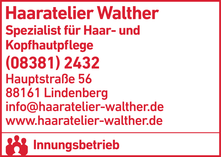 Die Adresse von Haaratelier Walther Friseursalon lautet: Hauptstr. 56, 88161 Lindenberg
