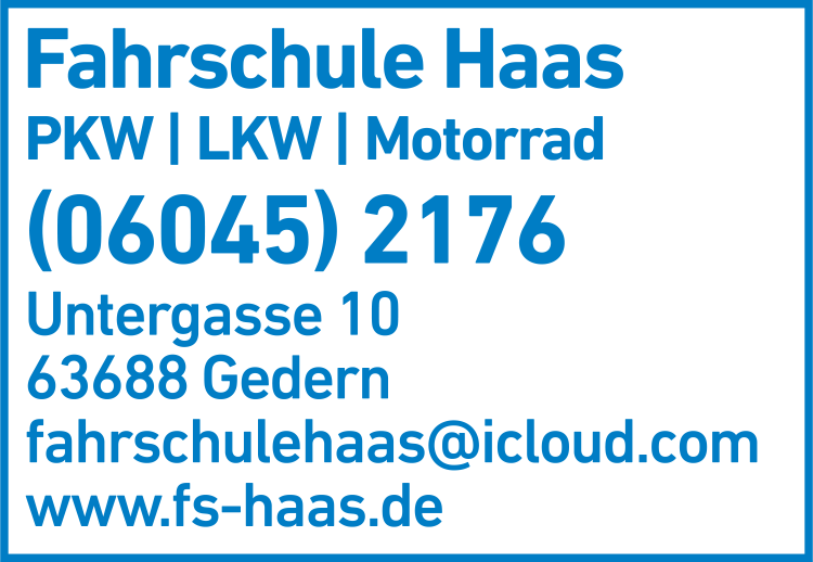 Die Adresse von Haas Rene Fahrschule lautet: Untergasse 10, 63688 Gedern