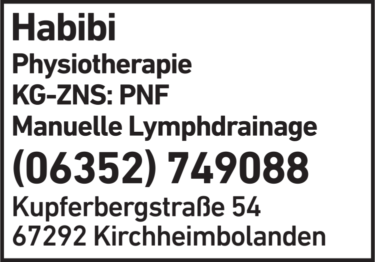 Die Adresse von Habibi Gholamreza Praxis für Physiotherapie lautet: Kupferbergstr. 54, 67292 Kirchheimbolanden