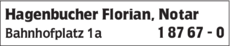 Die Adresse von Hagenbucher Florian lautet: Bahnhofplatz 1 A, 94315 Straubing