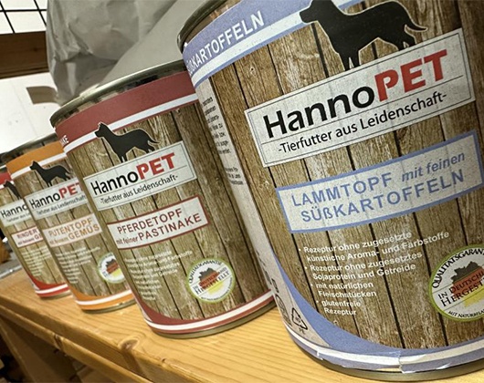 | Wir sind HannoPET... Wir sind ein echter Familienbetrieb - mit Herz, Hand und Leidenschaft für gesunde Hundeernährung. Neben unseren natürlichen Snacks aus eigener Herstellung bieten wir auch eine feine Auswahl an Reinfleisch Dosen, Menüdosen, Hundetrockenfutter, Gemüseflocken und natürlichen Kauartikeln an. So findet jeder Hund das Passende - ob für den täglichen Futterplan oder als besondere Belohnung zwischendurch. |
