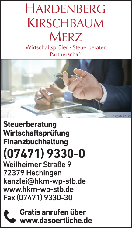 Die Adresse von Hardenberg, Kirschbaum & Merz Steuerberater lautet: Weilheimer Str. 9, 72379 Hechingen