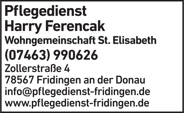 Wie lautet die Adresse von Harry Ferencak Pflegedienst Fridingen?