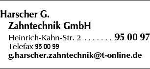 Wie lautet die Adresse von Harscher G. Zahntechnik GmbH?