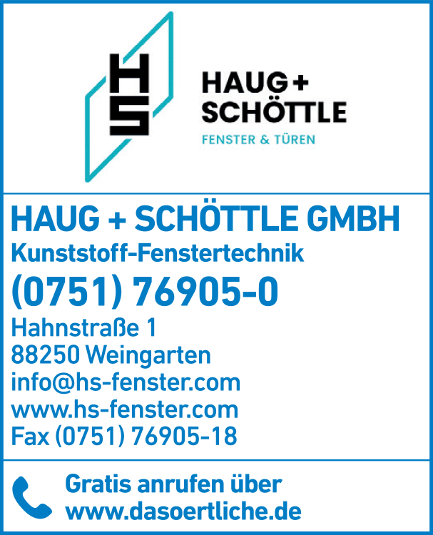 Haug + Schöttle GmbH Kunststoff-Fenstertechnik 0751 7 69 05-0 Weingarten Hahnstr. 1 88250