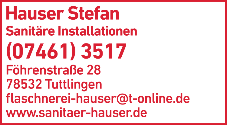 Hauser Stefan Sanitäre Installationen 07461 35 17 Tuttlingen Föhrenstr. 28 78532 2.5 5 3