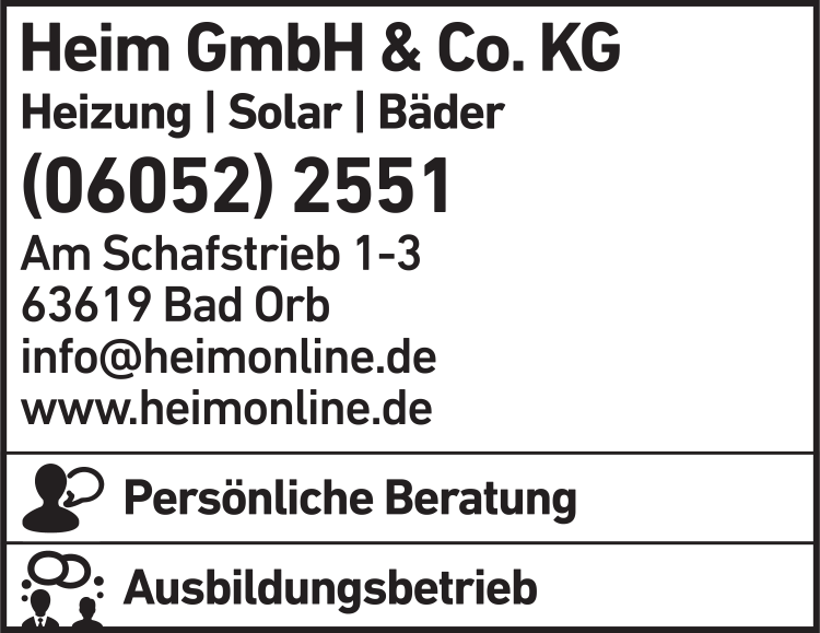 Heim GmbH & Co. KG Heizung, Bäder, Sanitär 06052 25 51 Bad Orb Am Schafstrieb 1 63619