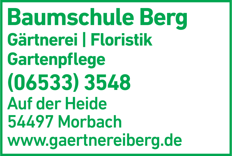 Die Adresse von Heiner Berg Gärtnerei & Baumschule lautet: Auf der Heide, 54497 Morbach