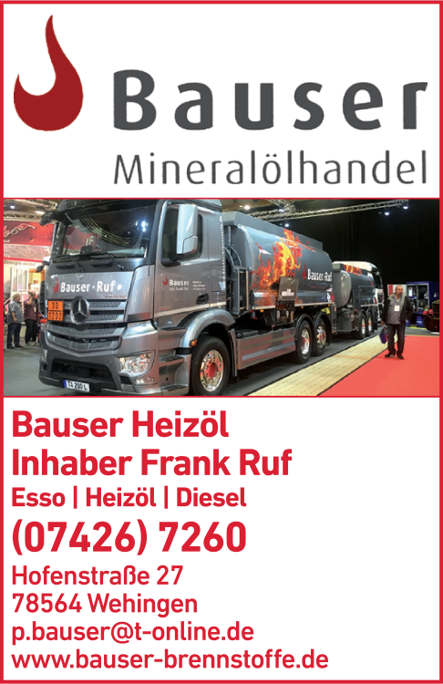 Die Adresse von Heizöl Bauser lautet: Hofenstr. 27, 78564 Wehingen