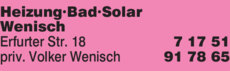 Wie lautet die Adresse von Heizung-Bad-Solar Wenisch?