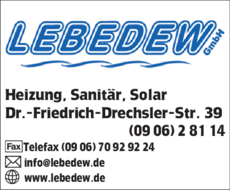 Heizung Lebedew Haustechnik GmbH 0906 2 81 14 Donauwörth Dr.-Friedrich-Drechsler-Str. 39 86609 Riedlingen https://ies.v4all.de/0122/OETB/0106/5/4065/5514065_200x100px.png