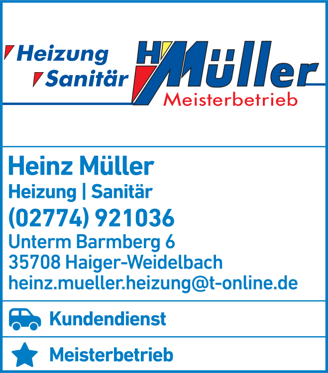 Heizung Müller Heizung 02774 92 10 36 Haiger-Weidelbach Unterm Barmberg 6 35708 Weidelbach