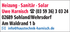 Heizung Sanitär Solar Harnisch Uwe 035936 3 03 24 Sohland a. d. Spree Am Waldrand 1 b 02689 Wehrsdorf