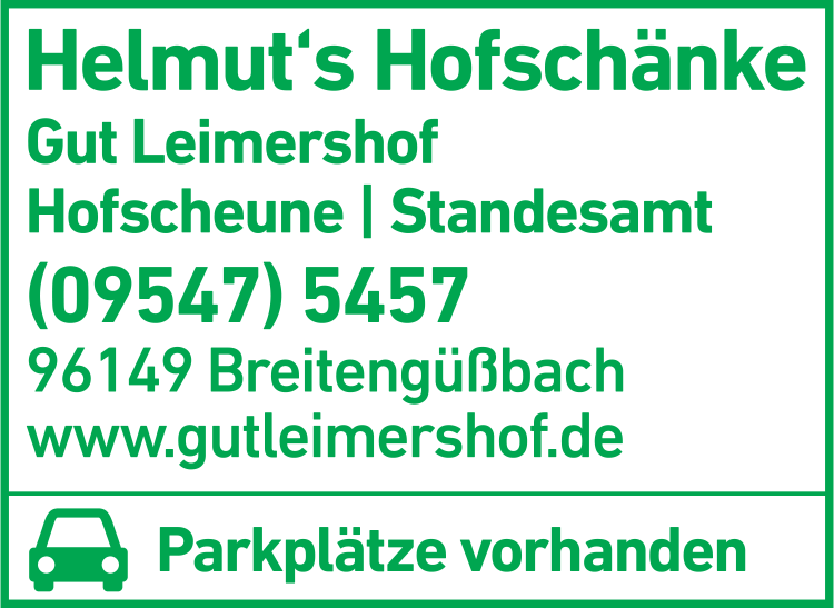 Die Adresse von Helmut's Hofschänke lautet: Gut Leimershof 8, 96149 Breitengüßbach