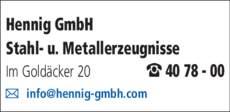 Wie sind die Öffnungszeiten von Hennig GmbH?