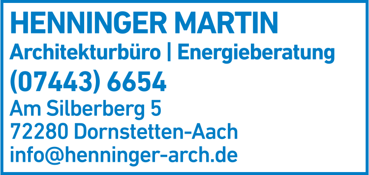 Henninger Martin Architekturbüro 07443 66 54 Dornstetten Am Silberberg 5 72280 Aach