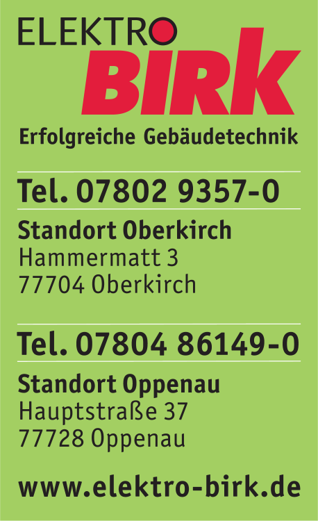 Die Adresse von Herbert Birk Elektro lautet: Hauptstr. 37, 77728 Oppenau