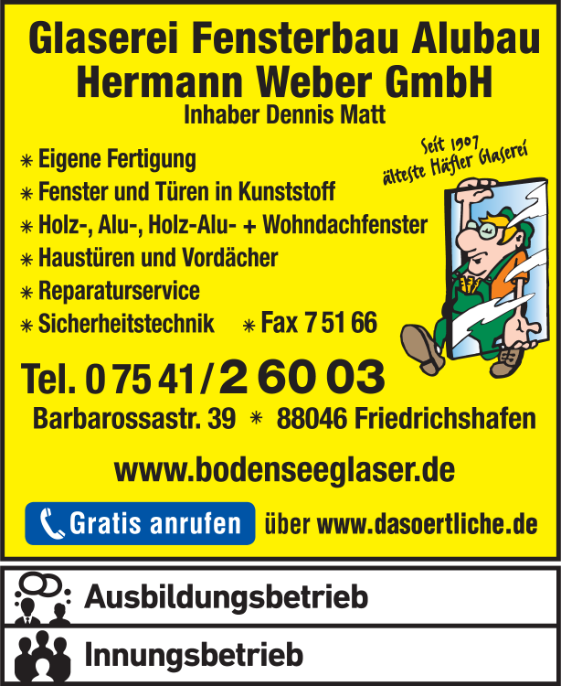Die Adresse von Hermann Weber GmbH lautet: Barbarossastr. 39, 88046 Friedrichshafen