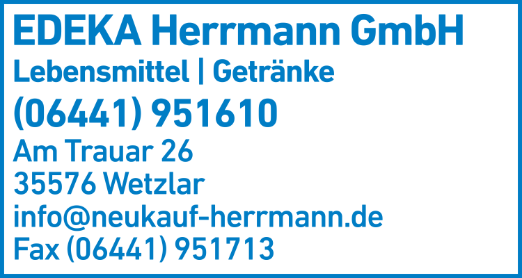 Die Adresse von Herrmann GmbH - EDEKA lautet: Am Trauar 26, 35576 Wetzlar