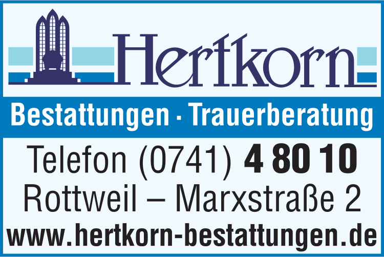 Die Adresse von Hertkorn Bestattungen GmbH lautet: Marxstr. 2, 78628 Rottweil