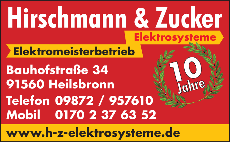 Die Adresse von Hirschmann & Zucker Elektrosysteme lautet: Bahnhofstr. 34, 91560 Heilsbronn