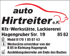Die Adresse von Hirtreiter Auto lautet: Hagengruber Str. 19, 94267 Prackenbach