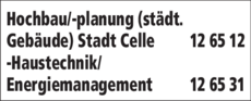 Hochbau/-planung (städt. Gebäude) Stadt Celle bietet Haustechnik und Energiemanagement als Produkt(e) an